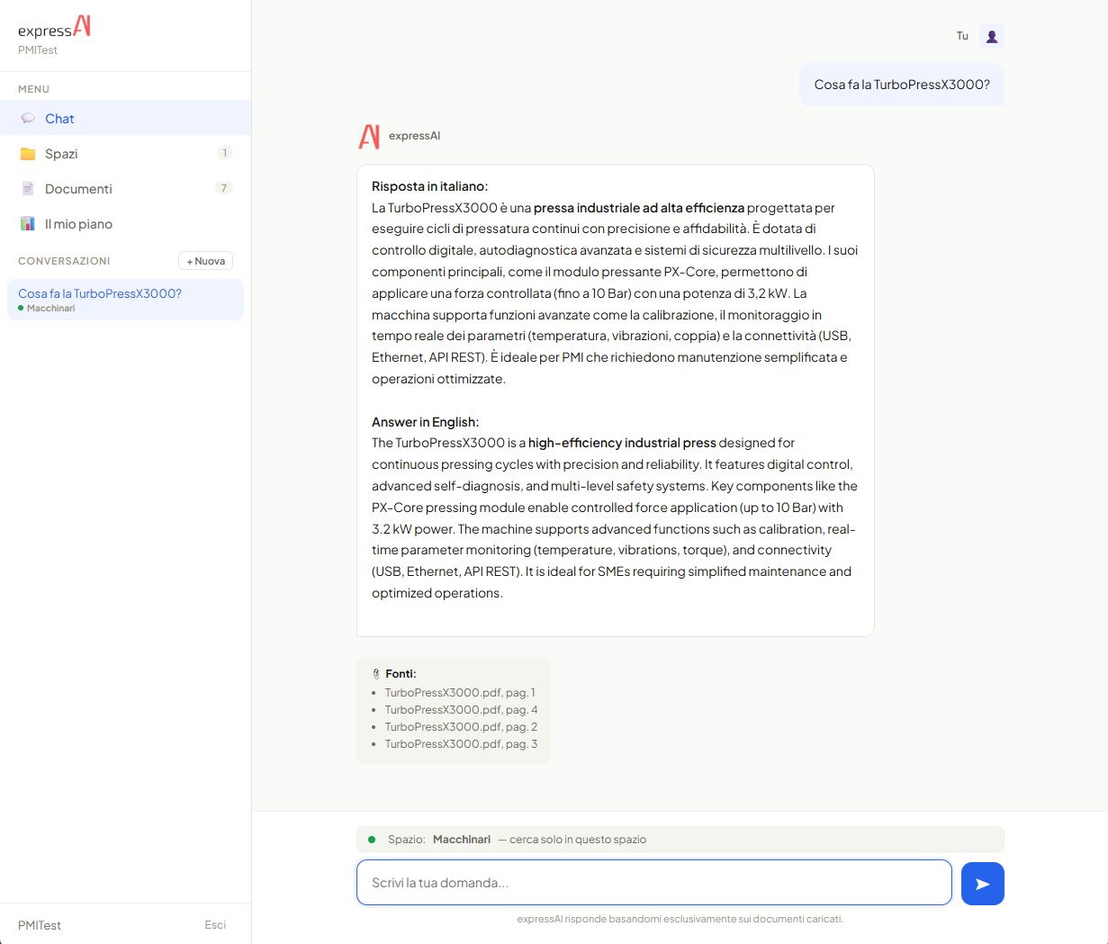 Progettato per professionisti, tecnici e PMI, expressAI combina un’interfaccia pulita con un motore AI ottimizzato per l’analisi documentale.