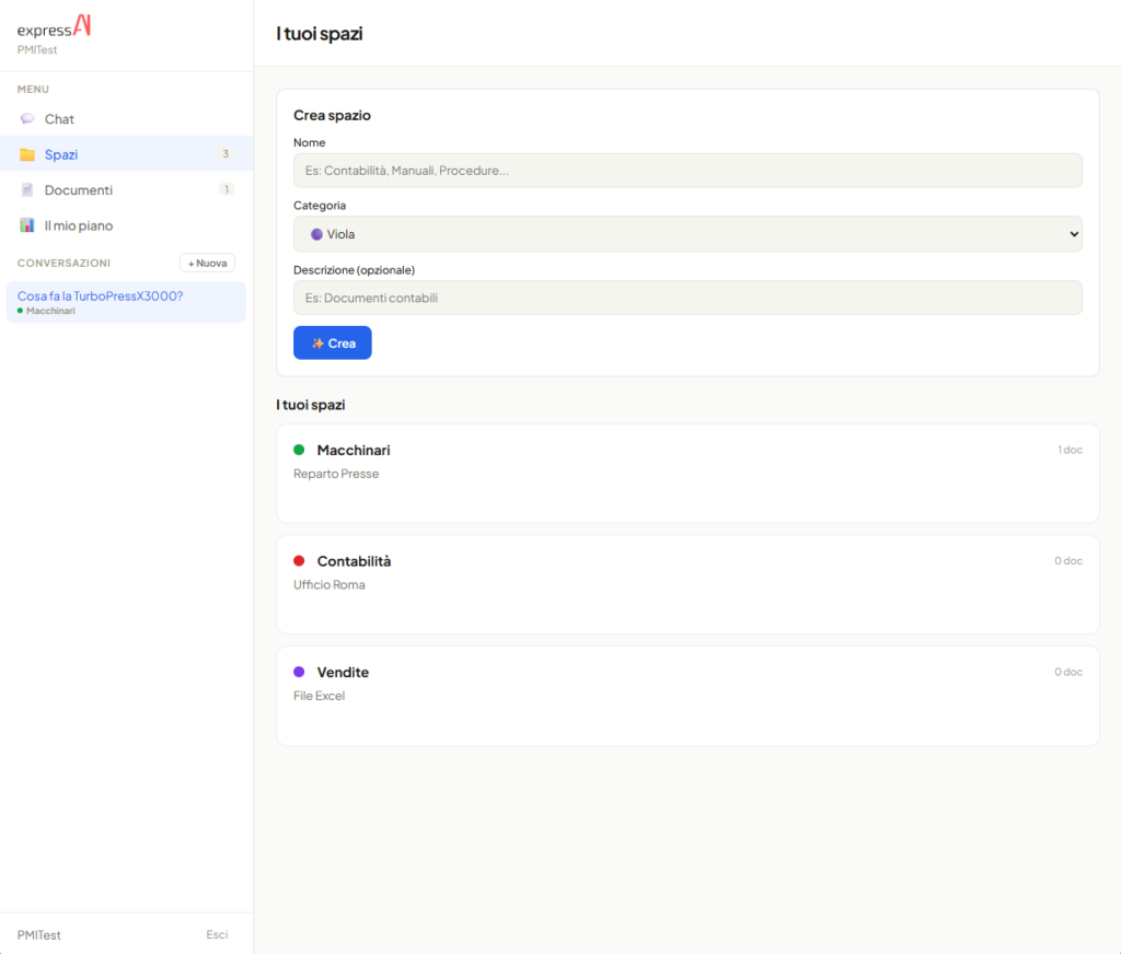 Gli Spazi sono l’ambiente collaborativo dove il tuo team lavora, comunica e costruisce valore con l’AI.
